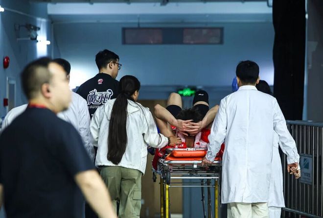 只是如今在一场补赛当中,郭艾伦在对阵山东的第四节比赛,他在一次快攻上篮对抗后,不幸落地时左膝受伤。郭艾伦当时痛苦捂着受伤的部位在地板翻滚,且还用力拍打地板极为痛苦,随后被担架车给抬下场。